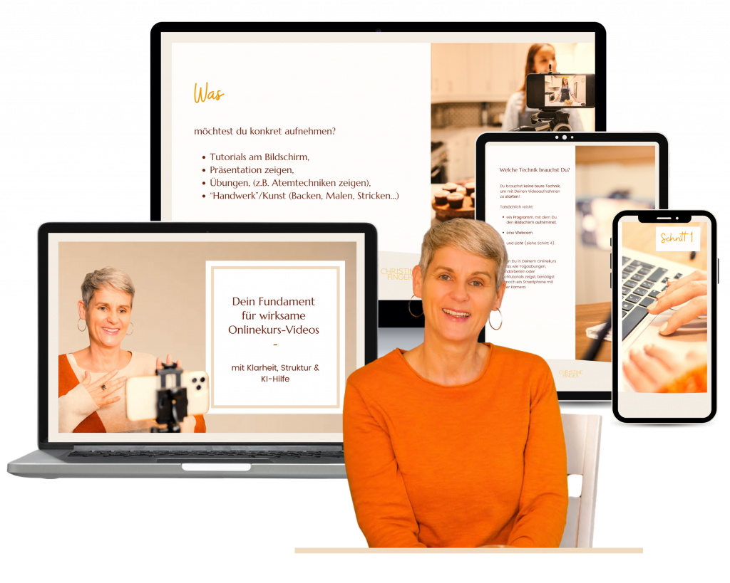 Am 13. & 14. September 2025 entwickelst du mit mir und smarter KI deinen klaren Startplan für Kursvideos, die wirklich wirken – von der Blockade vor der Kamera zur ersten Videolektion, an nur einem Wochenende.